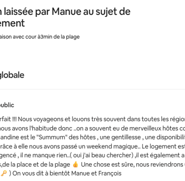 Notre calendrier airbnb est à jour pour voir les disponibilités et tarifs auquel nous déduirons les frais de plateforme en directe. Cliquez sur voir dispo pour estimer les informations.